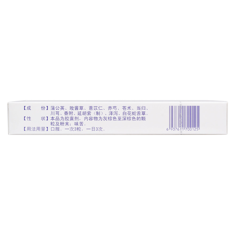 【主要成份】蒲公英、敗醬草、赤芍、薏苡仁、蒼術(shù)、當歸、川芎、香附、澤瀉、白花蛇舌草、延胡索。